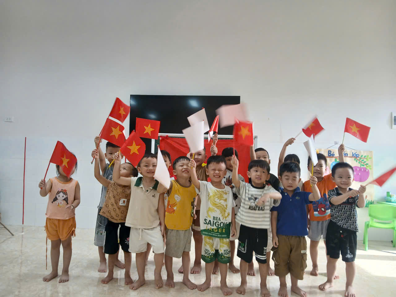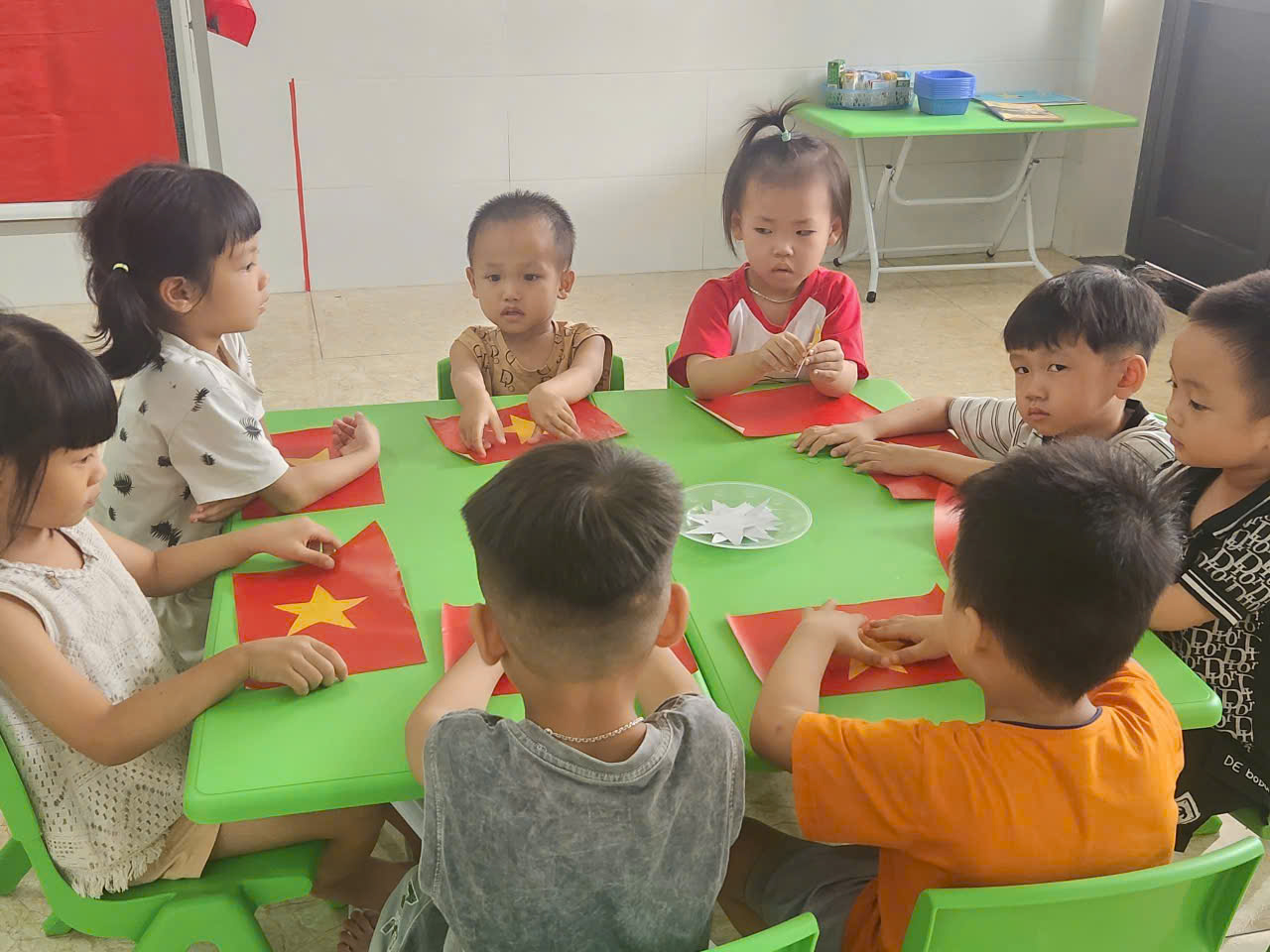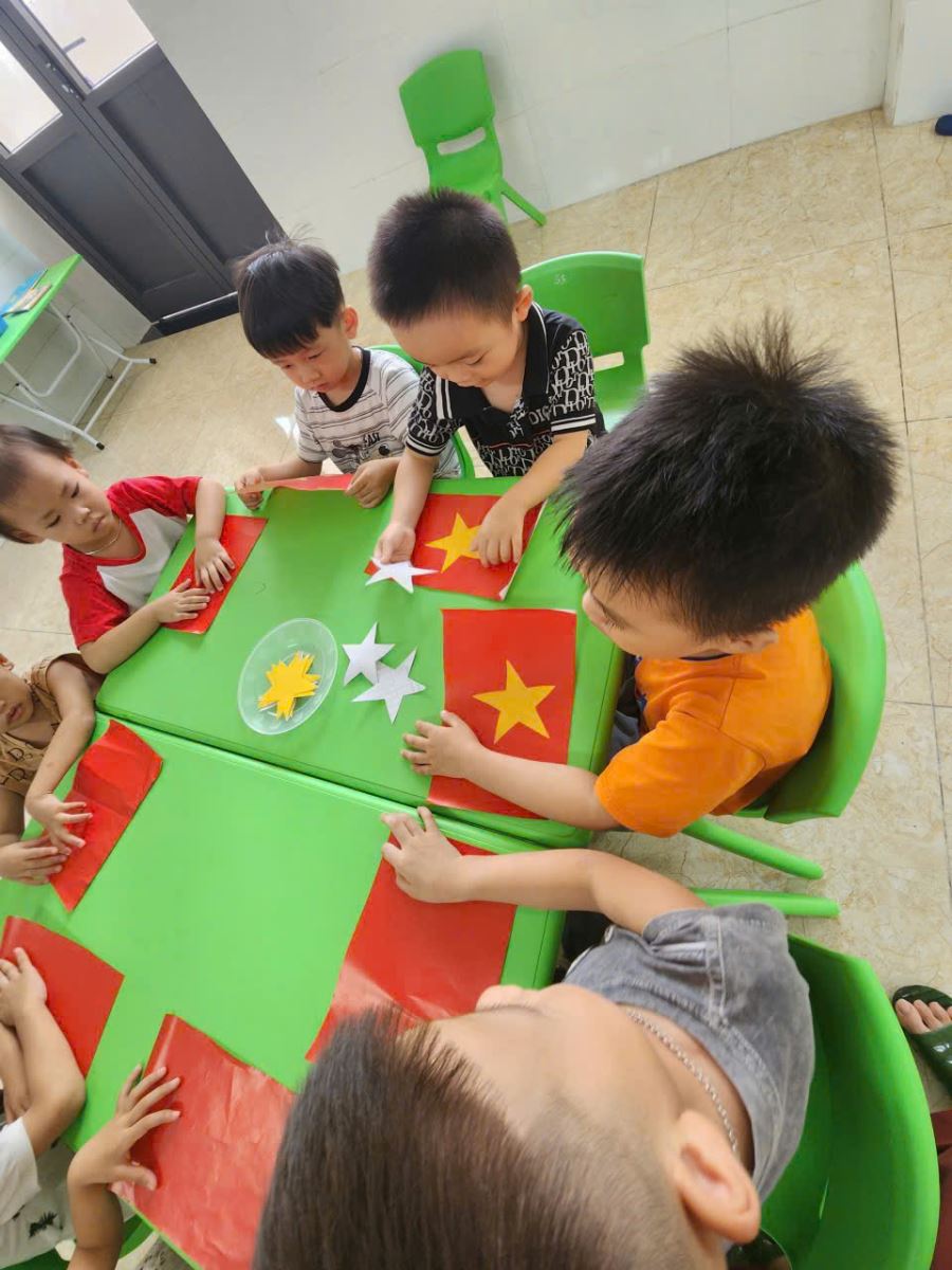 01/09/2025 A- A A+ | CÁC HOẠT ĐỘNG TRẢI NGHIỆM Ý NGHĨA VỚI SẮC CỜ TỔ QUỐC Xem Chia s? CÁC HOẠT ĐỘNG TRẢI NGHIỆM Ý NGHĨA VỚI SẮC CỜ TỔ QUỐC Trường Mầm non Hợp Thanh Hòa chung không khí tưng bừng chào mừng ngày Quốc khánh 2/9, các cô giáo trường Mầm non Hợp Thanh đã tổ chức nhiều hoạt động trải nghiệm sáng tạo cho các bé ở các độ tuổi. Thông qua những hoạt động gần gũi, trẻ không chỉ được rèn kỹ năng khéo léo mà còn bồi dưỡng tình yêu quê hương, đất nước. 1. Xé dán tạo hình lá cờ Tổ quốc – Lớp 5 tuổi Dưới sự hướng dẫn tận tình của cô giáo, các bé 5 tuổi đã hào hứng xé những mảnh giấy màu đỏ, vàng để dán thành lá cờ đỏ sao vàng. Mỗi sản phẩm đều chứa đựng sự chăm chút, khéo léo và niềm tự hào trẻ thơ. 2. Mầm non với sắc cờ đỏ thắm – Lớp 5 tuổi Các bé lớp 5 tuổi còn tham gia hoạt động sáng tạo với chủ đề “Sắc cờ đỏ thắm”. Sản phẩm của trẻ được trưng bày tại lớp học, tạo nên một không gian rực rỡ, đầy ý nghĩa. 3. Tạo hình dán lá cờ – Lớp 4 tuổi Với đôi tay nhỏ xinh, các bé 4 tuổi tập trung dán lá cờ Tổ quốc. Hoạt động giúp trẻ làm quen với kỹ năng thủ công, rèn sự kiên trì và khéo léo. 4. Tô màu lá cờ Tổ quốc – Lớp 3 tuổi Ở lứa tuổi nhỏ nhất, các bé 3 tuổi được làm quen với tô màu lá cờ đỏ sao vàng. Những nét bút ngây thơ nhưng tràn đầy sự hứng thú, góp phần khơi gợi trong các con tình cảm yêu Tổ quốc ngay từ những bước đầu tiên. Tập tin đính kèm Tải về