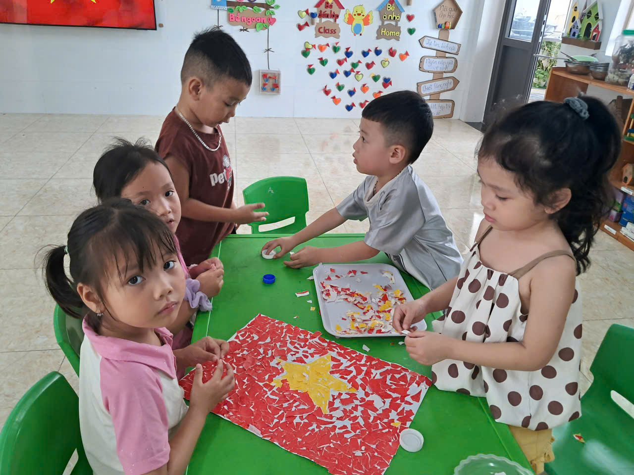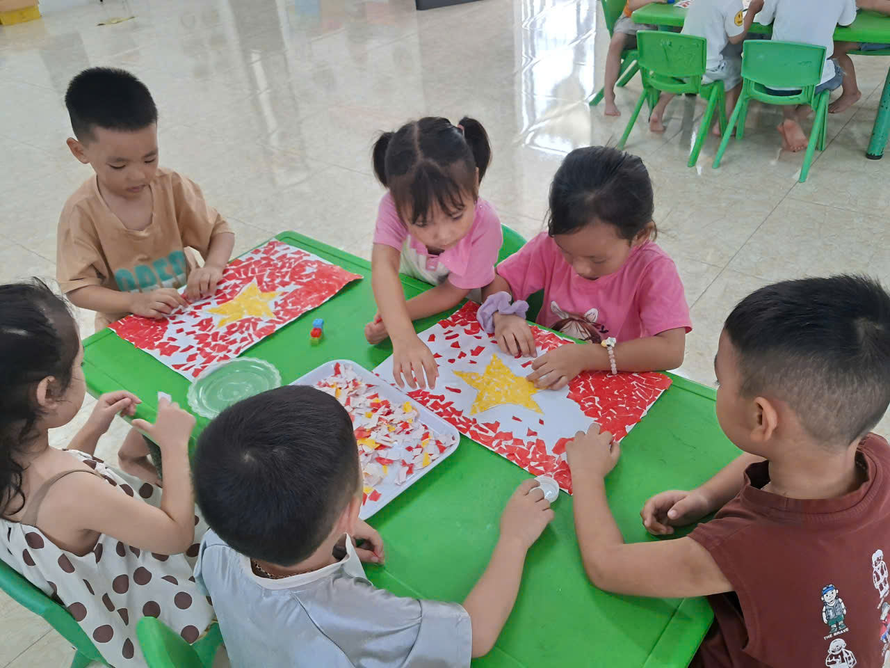 01/09/2025 A- A A+ | HOẠT ĐỘNG XÉ DÁN TẠO HÌNH LÁ CỜ LỚP 5TA4 Xem Chia s? HOẠT ĐỘNG XÉ DÁN TẠO HÌNH LÁ CỜ CHÀO MỪNG QUỐC KHÁNH 2/9 Hòa trong không khí tưng bừng cả nước kỷ niệm Quốc khánh 2/9, các bé lớp 5 tuổi A4 – Trường Mầm non Hợp Thanh đã có một hoạt động trải nghiệm vô cùng ý nghĩa: xé dán tạo hình lá cờ Tổ quốc. Ngay từ đầu giờ, cô giáo trò chuyện cùng các con về ý nghĩa ngày 2/9 – ngày Bác Hồ đọc Tuyên ngôn Độc lập, khai sinh ra nước Việt Nam Dân chủ Cộng hòa. Qua đó, trẻ thêm tự hào và háo hức chuẩn bị cho hoạt động tạo hình. Với những tờ giấy màu đỏ, vàng được cô chuẩn bị, các bé say sưa xé những mảnh giấy nhỏ rồi khéo léo dán lên giấy nền để tạo thành lá cờ đỏ sao vàng rực rỡ. Bàn tay nhỏ xinh thoăn thoắt, ánh mắt chăm chú, nụ cười rạng rỡ… tất cả làm nên một không khí hăng say, sáng tạo. Hoạt động không chỉ rèn luyện cho trẻ sự khéo léo, kiên trì, kỹ năng xé – dán mà còn bồi dưỡng tình yêu quê hương, đất nước. Khi hoàn thành sản phẩm, các bé cùng nhau trưng bày, ngắm nhìn và hát vang bài hát “Như có Bác Hồ trong ngày vui đại thắng” trong niềm tự hào. Buổi học khép lại nhưng đã để lại nhiều ấn tượng đẹp trong lòng các con. Những lá cờ được làm bằng đôi bàn tay trẻ thơ chính là tình cảm trong sáng, ngây thơ mà các bé lớp 5 tuổi A4 gửi đến Tổ quốc nhân dịp kỷ niệm ngày lễ lớn. Sau đây là một số hình ảnh: Tập tin đính kèm Tải về