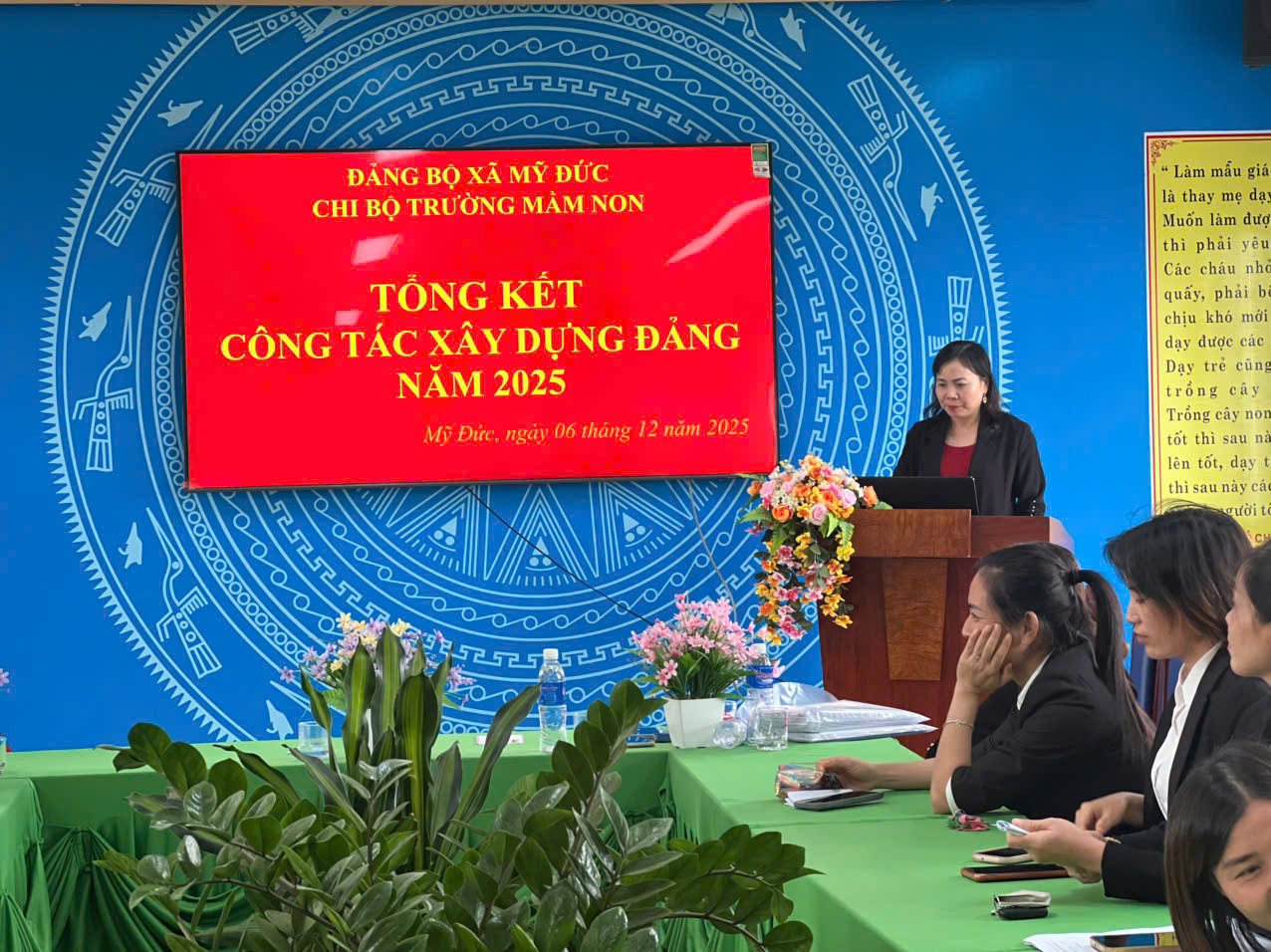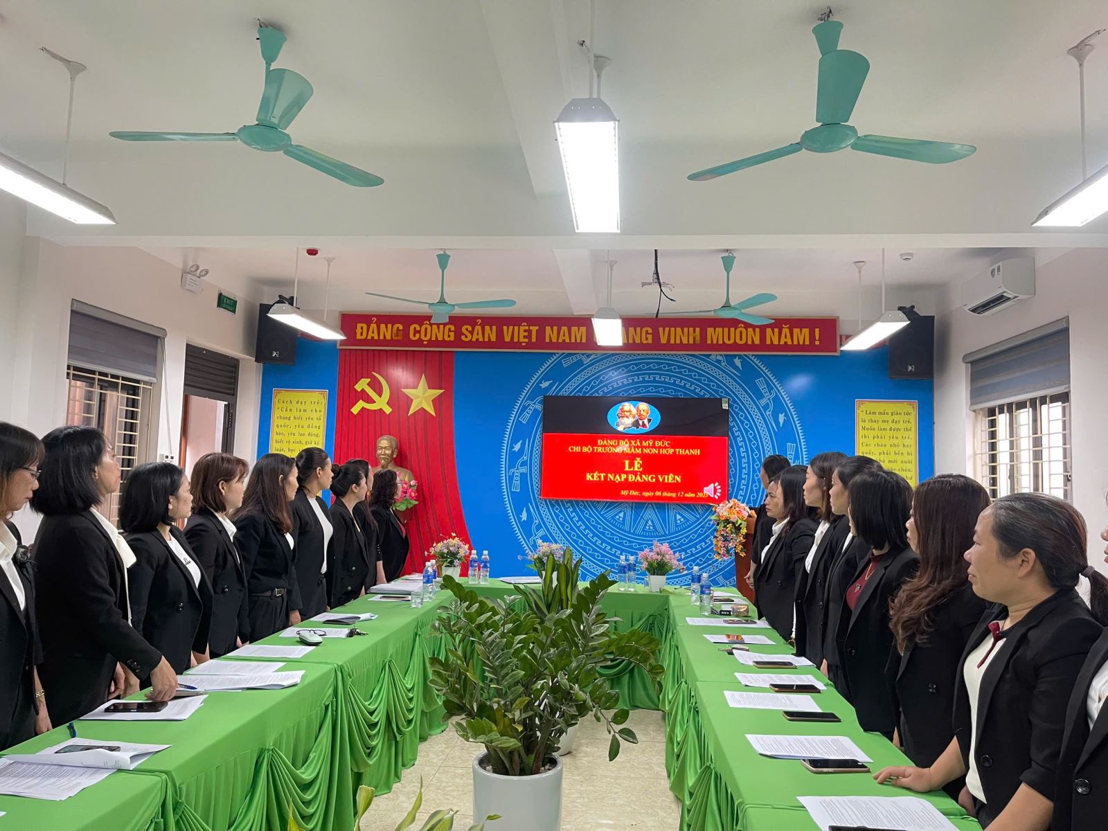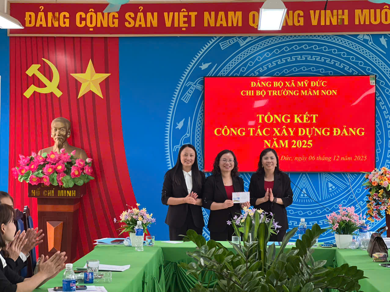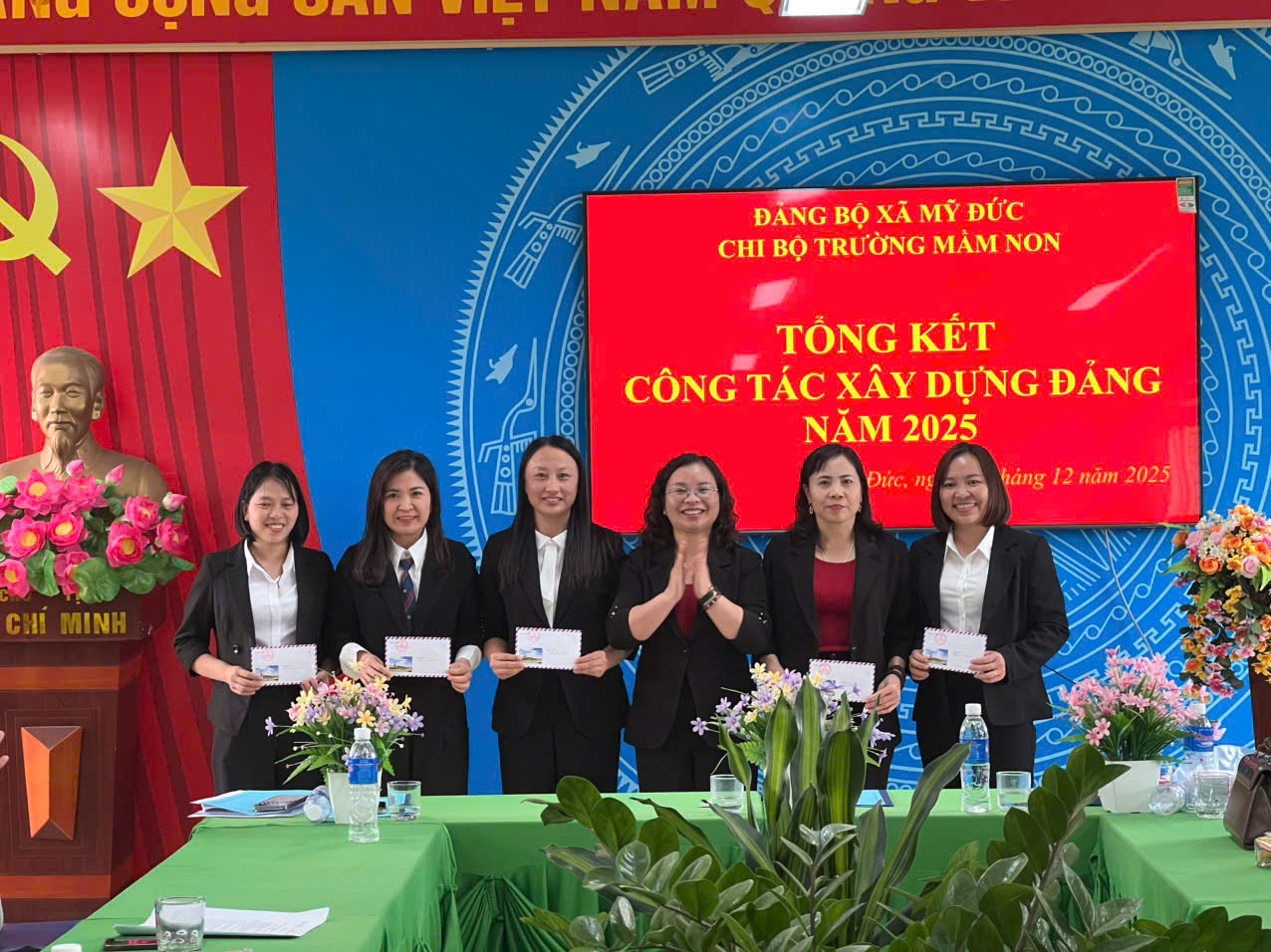 07/12/2025 A- A A+ | HỘI NGHỊ KIỂM ĐIỂM TẬP THỂ , CÁ NHÂN VÀ TỔNG KẾT CÔNG TÁC XÂY DỰNG ĐẢNG NĂM 2025 Xem Chia s? CHI BỘ TRƯỜNG MẦM NON HỢP THANH TỔ CHỨC LỄ KẾT NẠP ĐẢNG VIÊN MỚI, HỘI NGHỊ KIỂM ĐIỂM TẬP THỂ – CÁ NHÂN VÀ TỔNG KẾT CÔNG TÁC XÂY DỰNG ĐẢNG NĂM 2025 Thực hiện Điều lệ Đảng Cộng sản Việt Nam và kế hoạch công tác xây dựng Đảng năm 2025 của Đảng ủy xã Mỹ Đức, ngày 06/12/2025, Chi bộ Trường Mầm non Hợp Thanh đã long trọng tổ chức Lễ kết nạp đảng viên mới, Hội nghị kiểm điểm tập thể và cá nhân, đồng thời Tổng kết công tác xây dựng Đảng năm 2025. 1. Lễ kết nạp đảng viên mới Mở đầu chương trình, Chi bộ tổ chức Lễ kết nạp đảng viên mới cho hai quần chúng ưu tú: Đồng chí Nguyễn Thị Hương Đồng chí Nguyễn Thị Hồng Nhung Buổi lễ diễn ra trong không khí trang nghiêm, đúng quy định. Đồng chí Bí thư Chi bộ đã công bố Quyết định kết nạp đảng viên của Đảng ủy xã Hợp Thanh. Dưới cờ Đảng, cờ Tổ quốc và chân dung Chủ tịch Hồ Chí Minh, hai đồng chí đã đọc lời tuyên thệ, thể hiện quyết tâm phấn đấu, rèn luyện, hoàn thành tốt nhiệm vụ của người đảng viên mới. Chi bộ giao nhiệm vụ và phân công đảng viên chính thức tiếp tục giúp đỡ hai đồng chí trong thời gian dự bị, tạo điều kiện để hai đồng chí phát huy năng lực, đóng góp vào công tác chung của nhà trường. 2. Hội nghị kiểm điểm tập thể và cá nhân năm 2025 Ngay sau lễ kết nạp, Chi bộ tiến hành Hội nghị kiểm điểm tập thể và cá nhân đảng viên năm 2025. Tại hội nghị: Tập thể Chi bộ đã báo cáo kiểm điểm theo các tiêu chí: công tác lãnh đạo nhiệm vụ chuyên môn; sinh hoạt chi bộ; công tác phát triển đảng; thực hiện quy chế dân chủ; công tác kiểm tra, giám sát; việc học tập và làm theo tư tưởng, đạo đức, phong cách Hồ Chí Minh. Từng đảng viên nghiêm túc tự kiểm điểm về tư tưởng chính trị, đạo đức lối sống, tinh thần trách nhiệm, ý thức tổ chức kỷ luật, kết quả thực hiện nhiệm vụ được giao và việc nêu gương. Các ý kiến đóng góp trong hội nghị được thực hiện dân chủ, thẳng thắn, mang tính xây dựng. Chi bộ đã bỏ phiếu xếp loại đảng viên năm 2025 đảm bảo khách quan, công bằng và đúng quy định. 3. Tổng kết công tác xây dựng Đảng năm 2025 Chi bộ đã tiến hành đánh giá toàn diện kết quả công tác xây dựng Đảng năm 2025, nổi bật gồm: Duy trì tốt nền nếp sinh hoạt chi bộ và sinh hoạt chuyên đề. Lãnh đạo, chỉ đạo thực hiện hiệu quả nhiệm vụ chăm sóc – giáo dục trẻ, nâng cao chất lượng đội ngũ. Thực hiện nghiêm túc việc học tập và làm theo tư tưởng, đạo đức, phong cách Hồ Chí Minh. Công tác phát triển Đảng đạt kết quả tích cực với 02 đảng viên mới được kết nạp. Công tác kiểm tra, giám sát, dân vận, quy chế dân chủ được thực hiện bài bản, đúng kế hoạch. Nội bộ đoàn kết, trách nhiệm, tinh thần nêu gương của đảng viên tiếp tục được phát huy. Phương hướng công tác năm 2026, Chi bộ tập trung vào: Tiếp tục nâng cao chất lượng sinh hoạt chi bộ. Đẩy mạnh chuyển đổi số trong công tác Đảng và chuyên môn. Tăng cường kỷ luật, kỷ cương, trách nhiệm và tinh thần nêu gương của từng đảng viên. Bồi dưỡng, tạo nguồn và phát triển đảng viên mới. Buổi lễ và hội nghị diễn ra trang trọng, nghiêm túc và hiệu quả, thể hiện tinh thần đoàn kết, trách nhiệm của tập thể Chi bộ Trường Mầm non Hợp Thanh. Đây là dấu mốc quan trọng, góp phần nâng cao năng lực lãnh đạo và sức chiến đấu của Chi bộ, tạo động lực để hoàn thành tốt nhiệm vụ năm học và công tác xây dựng Đảng trong thời gian tới. Tập tin đính kèm Tải về