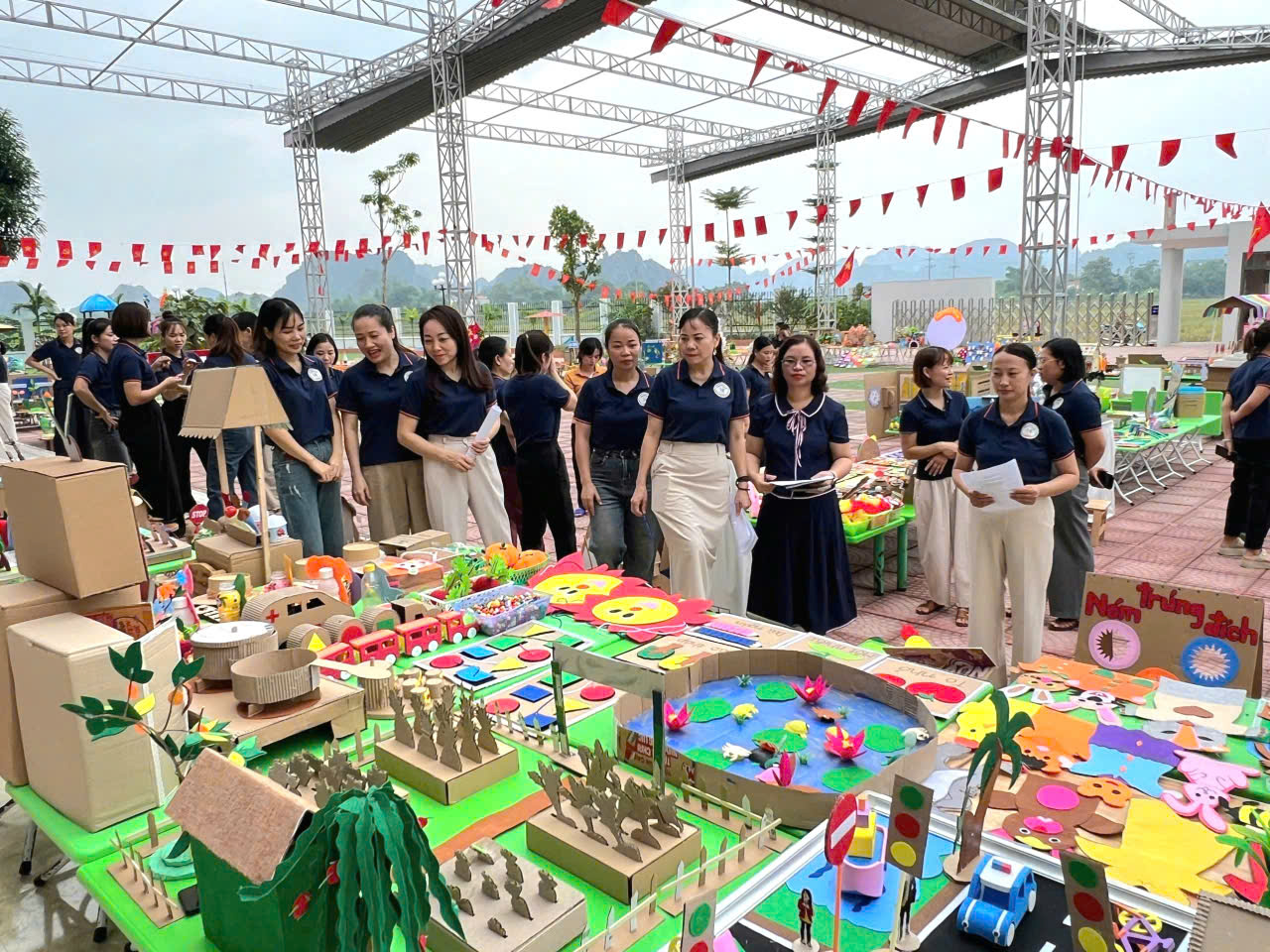 18/10/2025 A- A A+ | HỘI THI LÀM ĐỒ DÙNG SÁNG TẠO NĂM HỌC 2025 -2026 Xem Chia s? 🌼 HỘI THI “LÀM ĐỒ DÙNG DẠY HỌC SÁNG TẠO” PHÁT HUY TRÍ TUỆ VÀ TÌNH YÊU NGHỀ CỦA GIÁO VIÊN TRƯỜNG MẦM NON HỢP THANH Nhằm khuyến khích giáo viên tích cực đổi mới, sáng tạo trong công tác giảng dạy và nâng cao chất lượng chăm sóc, giáo dục trẻ. Hôm nay, ngày 17/10/2025,Trường Mầm non Hợp Thanh đã tổ chức Hội thi “Làm đồ dùng dạy học sáng tạo” với sự tham gia sôi nổi của toàn thể cán bộ, giáo viên trong nhà trường. 🌸 Ngay từ khi phát động, hội thi đã nhận được sự hưởng ứng nhiệt tình. Mỗi cô giáo đều mang đến hội thi niềm đam mê, tâm huyết và khối óc sáng tạo không ngừng nghỉ. Từ những vật liệu tưởng chừng đơn giản, quen thuộc như chai nhựa, bìa cứng, vải vụn, thìa nhựa, hộp sữa… dưới bàn tay khéo léo và óc sáng tạo của các cô đã trở thành những bộ đồ dùng, đồ chơi sinh động, an toàn và mang tính giáo dục cao. 🎨 Các sản phẩm tham dự hội thi vô cùng phong phú và đa dạng, thể hiện ở nhiều lĩnh vực khác nhau: Bộ đồ chơi học toán “Bé làm kỹ sư nhí”, Bộ tranh chữ cái sáng tạo, Mô hình “Vườn rau của bé”, Trò chơi “Giao thông an toàn”, Hay những góc học tập xinh xắn, gần gũi với cuộc sống hằng ngày của trẻ. Mỗi sản phẩm không chỉ đẹp mắt, bền chắc mà còn có giá trị thực tiễn, hỗ trợ hiệu quả cho giáo viên trong các hoạt động giảng dạy. 🌷 Qua hội thi, Ban giám khảo đánh giá cao tinh thần sáng tạo, sự đầu tư nghiêm túc của các giáo viên. Những sản phẩm xuất sắc sẽ được ứng dụng trong thực tế giảng dạy và trưng bày tại các buổi sinh hoạt chuyên môn, góp phần làm phong phú môi trường học tập của trẻ. 💐 Hội thi “Làm đồ dùng dạy học sáng tạo” thực sự là dịp để mỗi giáo viên thể hiện tài năng, niềm đam mê, tình yêu nghề và tình yêu thương dành cho các con. Mỗi sản phẩm đều chứa đựng công sức, trí tuệ và tấm lòng của các cô, với mong muốn mang đến cho trẻ những giờ học nhẹ nhàng, hấp dẫn và đầy hứng thú. Tập tin đính kèm Tải về
