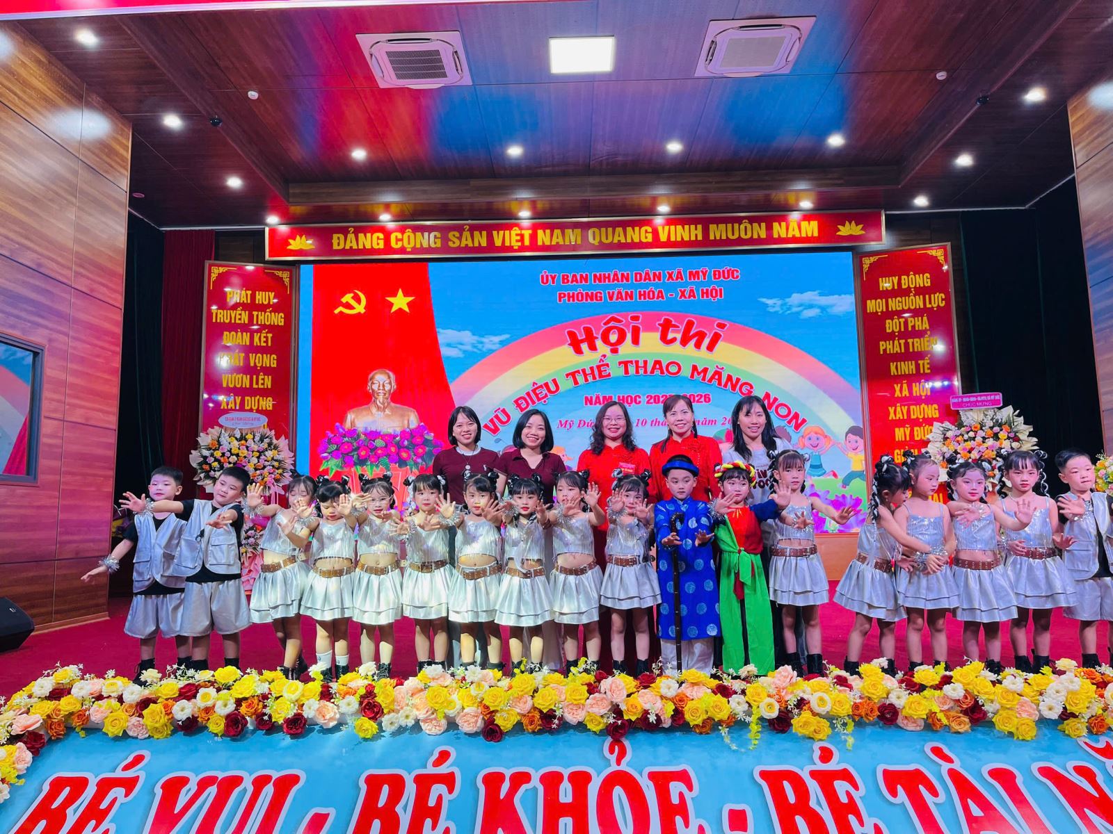 13/04/2026 A- A A+ | HỘI THI VŨ ĐIỆU THỂ THAO NĂM NON XÃ MỸ ĐỨC Xem Chia s? Thực hiện Kế hoạch tổ chức Hội thi “Vũ điệu thể thao măng non” cấp xã năm học 2025 – 2026 của UBND xã Mỹ Đức, ngày 10/04/2026 Trường Mầm non Hợp Thanh đã tích cực tham gia với tinh thần sôi nổi, hào hứng. Đây là hoạt động thiết thực nhằm đẩy mạnh giáo dục thể chất, phát triển vận động, kỹ năng xã hội và thẩm mỹ cho trẻ, đồng thời tạo sân chơi lành mạnh, bổ ích cho các con. Tham gia hội thi , các bé của nhà trường đã mang đến tiết mục đặc sắc với những động tác linh hoạt, sáng tạo, phù hợp với lứa tuổi.Các tiết mục được dàn dựng công phu, thể hiện sự nhịp nhàng, khỏe khoắn và giàu tính nghệ thuật, để lại nhiều ấn tượng tốt đẹp trong lòng Ban Giám khảo và khán giả. Đội thi của Trường Mầm non Hợp Thanh gồm các bé 5-6 tuổi, được tuyển chọn và luyện tập kỹ lưỡng. Với sự tự tin, đáng yêu và tinh thần đoàn kết, các con đã hoàn thành xuất sắc phần thi của mình, mang đến bầu không khí vui tươi, sôi động cho hội thi. Với sự nỗ lực đó, Trường Mầm non Hợp Thanh vinh dự đạt Giải Nhì và Giải Ấn tượng tại Hội thi “Vũ điệu thể thao măng non” cấp xã năm học 2025 – 2026. Đây là kết quả xứng đáng cho sự cố gắng của cô và trò nhà trường, đồng thời là nguồn động viên to lớn để tiếp tục nâng cao chất lượng giáo dục trong thời gian tới. Nhằm ghi nhận và động viên sự cố gắng, nỗ lực của các con, nhà trường đã có buổi liên hoan và trao tặng những chiếc ba lô xinh xắn như một món quà ý nghĩa. Những món quà nhỏ nhưng chứa đựng tình cảm yêu thương, sự khích lệ để các con tiếp tục tự tin, mạnh dạn tham gia các hoạt động trong học tập và cuộc sống. Nhà trường xin trân trọng cảm ơn các đồng chí lãnh đạo UBND xã Mỹ Đức đã quan tâm, chỉ đạo và tạo điều kiện để tổ chức một sân chơi bổ ích, ý nghĩa cho trẻ mầm non. Xin cảm ơn Ban Giám hiệu nhà trường đã sát sao chỉ đạo, tạo mọi điều kiện thuận lợi để đội thi tham gia đạt kết quả tốt. Xin chân thành cảm ơn quý phụ huynh đã luôn đồng hành, phối hợp chặt chẽ trong việc chuẩn bị trang phục, đạo cụ và động viên tinh thần cho các con. Đặc biệt, xin gửi lời cảm ơn sâu sắc tới các cô giáo đã tận tình hướng dẫn, luyện tập, chăm sóc để các con tự tin tỏa sáng trên sân khấu. Và trên hết, xin biểu dương các con đã cố gắng hết mình, mang đến những tiết mục đặc sắc, góp phần làm nên thành công của hội thi. Tập tin đính kèm Tải về