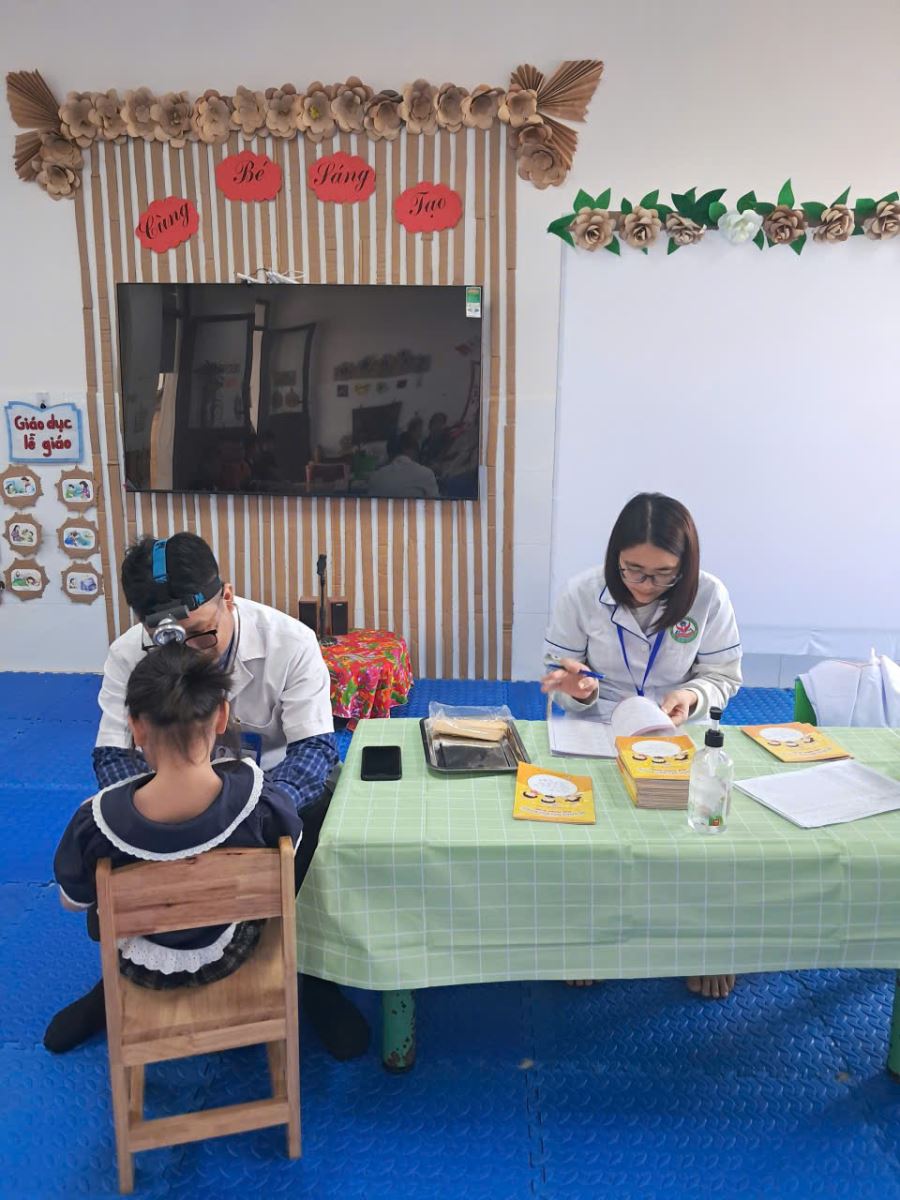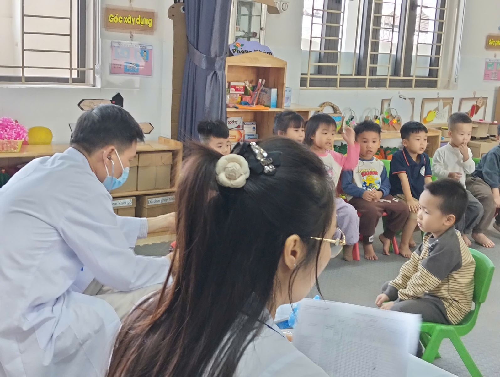 14/11/2025 A- A A+ | KHÁM SỨC KHỎE ĐỊNH KỲ CHO TRẺ TRƯỜNG MẦM NON HỢP THANH NĂM 2025 Xem Chia s? KHÁM SỨC KHỎE ĐỊNH KỲ CHO TRẺ TRƯỜNG MẦM NON HỢP THANH – NĂM 2025** Thực hiện nhiệm vụ chăm sóc – nuôi dưỡng – giáo dục trẻ, hằng năm Trường Mầm non Hợp Thanh luôn phối hợp với Trạm y tế xã để tổ chức khám sức khỏe định kỳ cho toàn bộ trẻ trong trường. Đây là hoạt động quan trọng nhằm theo dõi sự phát triển thể chất của trẻ, phát hiện sớm các vấn đề về sức khỏe, từ đó có biện pháp phối hợp cùng gia đình chăm sóc trẻ tốt hơn. 1. Mục đích của hoạt động khám sức khỏe Đánh giá tình trạng sức khỏe chung của trẻ trong toàn trường. Theo dõi chiều cao, cân nặng, chỉ số BMI nhằm phát hiện sớm tình trạng suy dinh dưỡng hoặc thừa cân. Phát hiện sớm các bệnh về mắt, tai – mũi – họng, răng miệng, da liễu… Tư vấn cho giáo viên và phụ huynh các biện pháp chăm sóc sức khỏe phù hợp với từng trẻ. Góp phần xây dựng môi trường giáo dục an toàn, lành mạnh, phòng tránh bệnh tật. 2. Nội dung khám sức khỏe Trong buổi khám sức khỏe định kỳ năm 2025, đội ngũ y bác sĩ đã tiến hành: Khám tai – mũi – họng, răng miệng. Khám mắt và đánh giá thị lực. Khám da, tim – phổi và một số chỉ số thể lực khác. 3. Kết quả khám sức khỏe Qua buổi khám sức khỏe, phần lớn trẻ đều có sức khỏe tốt, thể trạng phát triển bình thường theo lứa tuổi. Một số trẻ được phát hiện có các vấn đề phổ biến như sâu răng, viêm họng nhẹ, hoặc chỉ số dinh dưỡng chưa đạt mức tối ưu. Nhà trường đã gửi phiếu thông báo sức khỏe về cho từng phụ huynh, kèm theo khuyến nghị chăm sóc cụ thể. 4. Công tác phối hợp giữa nhà trường và phụ huynh Để đảm bảo sức khỏe cho trẻ, Trường Mầm non Hợp Thanh luôn đề cao sự phối hợp chặt chẽ với phụ huynh thông qua: Cập nhật đầy đủ thông tin sức khỏe trẻ sau mỗi đợt khám. Khuyến nghị phụ huynh theo dõi nếp ăn – ngủ – vệ sinh của trẻ tại nhà. Hướng dẫn phụ huynh bổ sung dinh dưỡng hợp lý và theo dõi các dấu hiệu bất thường của trẻ. Kịp thời thông báo cho giáo viên khi trẻ ốm hoặc đang điều trị bệnh. 5. Kết luận Hoạt động khám sức khỏe định kỳ là một trong những nội dung quan trọng giúp nhà trường thực hiện tốt công tác chăm sóc, nuôi dưỡng trẻ. Trường Mầm non Hợp Thanh sẽ tiếp tục duy trì và nâng cao chất lượng công tác này trong những năm tiếp theo, góp phần tạo môi trường học tập an toàn – thân thiện – khỏe mạnh cho trẻ. Tập tin đính kèm Tải về