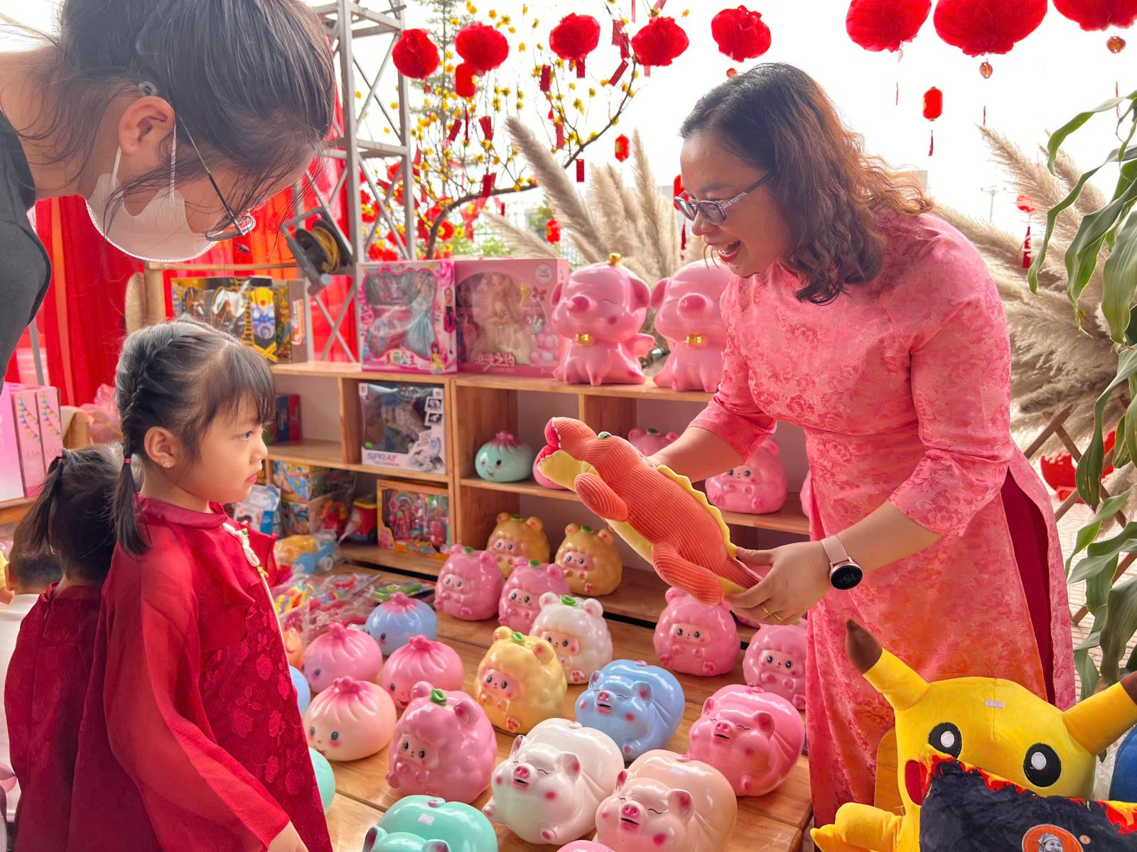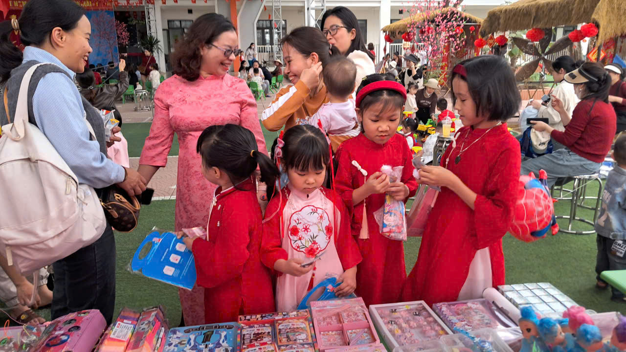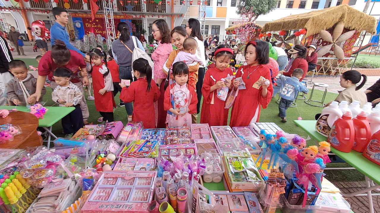 21/02/2026 A- A A+ | RỘN RÀNG HỘI CHỢ XUÂN 2026 TRƯỜNG MẦM NON HỢP THANH Xem Chia s? RỘN RÀNG HỘI CHỢ XUÂN 2026 – TRƯỜNG MẦM NON HỢP THANH Trong không khí rộn ràng chào đón mùa xuân mới, ngày 7/2/2026, Trường Mầm non Hợp Thanh đã long trọng tổ chức chương trình “Hội chợ Xuân 2026” trong niềm vui tươi, phấn khởi của cô và trò cùng toàn thể phụ huynh. Ngay từ sáng sớm, khuôn viên nhà trường đã ngập tràn sắc xuân với cờ hoa rực rỡ, cành đào, cành mai, câu đối đỏ và những gian hàng được trang trí đẹp mắt. Các bé trong những bộ áo dài truyền thống xinh xắn, tay trong tay cùng cô giáo tham quan, trải nghiệm từng gian hàng đầy màu sắc. Tại hội chợ, các con được tham gia nhiều hoạt động ý nghĩa như: gói bánh chưng, làm bao lì xì, tô tượng, làm thiệp chúc Tết, tham gia các trò chơi dân gian… Đặc biệt, các gian hàng ẩm thực với những món ăn truyền thống ngày Tết như bánh chưng, xôi, chè, bánh kẹo… do chính phụ huynh và giáo viên chuẩn bị đã thu hút đông đảo các “khách hàng nhí”. Hoạt động mua bán bằng tiền xu tượng trưng giúp trẻ rèn kỹ năng giao tiếp, tính mạnh dạn và sự tự tin. Không khí hội chợ càng thêm sôi động với các tiết mục văn nghệ mừng xuân đặc sắc do cô và trò biểu diễn. Những điệu múa vui tươi, lời ca trong trẻo đã mang đến một chương trình tràn ngập tiếng cười và niềm hạnh phúc. Hội chợ Xuân 2026 diễn ra vào ngày 7/2/2026 không chỉ là hoạt động trải nghiệm bổ ích mà còn là dịp để giáo dục trẻ về nét đẹp văn hóa truyền thống dân tộc, về tinh thần đoàn kết và sẻ chia. Đây cũng là cơ hội để tăng cường sự gắn kết giữa gia đình và nhà trường trong công tác chăm sóc, giáo dục trẻ. Nhân dịp năm mới, Trường Mầm non Hợp Thanh xin kính chúc Quý phụ huynh và các bé một năm mới An khang – Thịnh vượng – Hạnh phúc – Bình an. Chúc các con luôn chăm ngoan, học giỏi và tràn đầy niềm vui! Hội chợ Xuân 2026 khép lại với thật nhiều kỷ niệm đẹp, để lại ấn tượng sâu sắc trong lòng mỗi cô giáo, phụ huynh và các con học sinh thân yêu. 🌸🎊 Tập tin đính kèm Tải về
