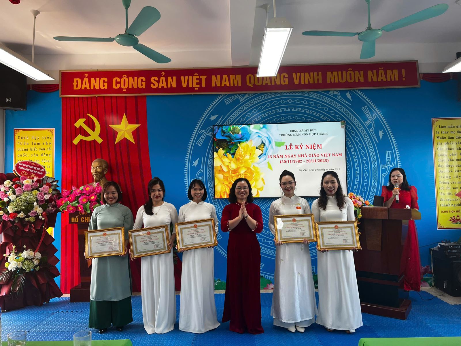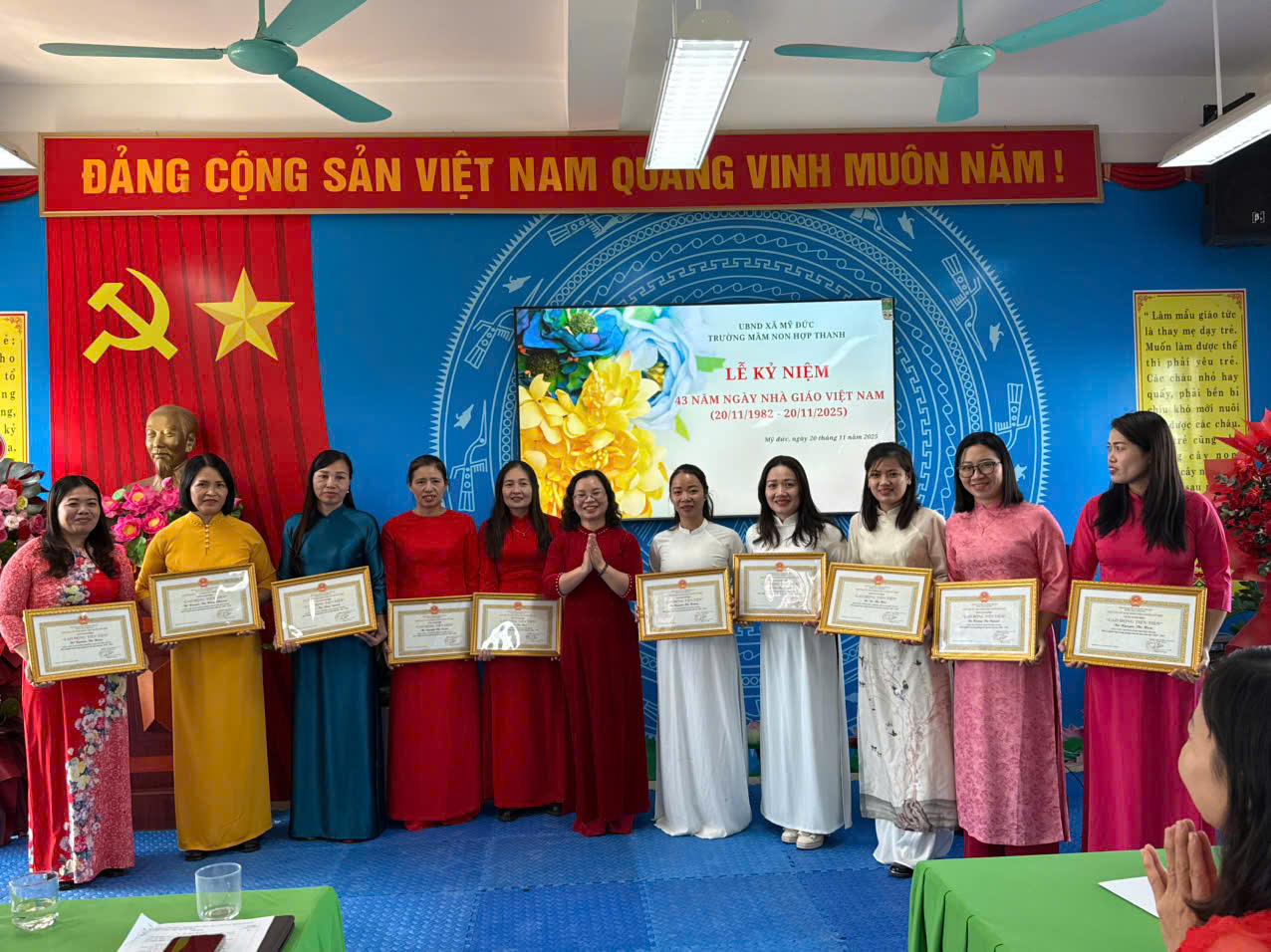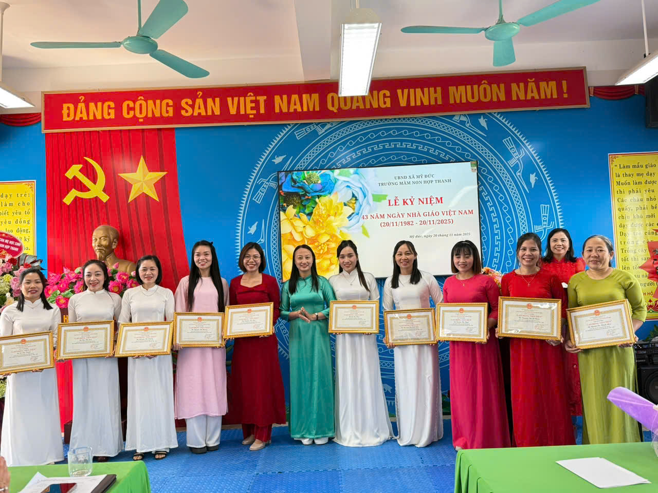 21/11/2025 A- A A+ | TRƯỜNG MẦM NON HỢP THANH LONG TRỌNG TỔ CHỨC LỄ KỶ NIỆM NGÀY NHÀ GIÁO VIỆT NAM Xem Chia s? TRƯỜNG MẦM NON HỢP THANH LONG TRỌNG TỔ CHỨC LỄ KỶ NIỆM NGÀY NHÀ GIÁO VIỆT NAM 20/11/2025, TRI ÂN CÁC THẾ HỆ NHÀ GIÁO VÀ TUYÊN DƯƠNG CÁ NHÂN XUẤT SẮC Hòa chung không khí cả nước hướng về Ngày Nhà giáo Việt Nam, sáng ngày 20/11/2025, Trường Mầm non Hợp Thanh đã long trọng tổ chức Lễ kỷ niệm Ngày Nhà giáo Việt Nam 20/11 nhằm tri ân những đóng góp to lớn của các thế hệ thầy cô giáo – những người đã và đang miệt mài gieo trồng tri thức. Buổi lễ vinh dự được đón tiếp các cô nguyên Hiệu trưởng, nguyên Hiệu phó và các giáo viên đã nghỉ hưu, những người đã cống hiến công sức, trí tuệ trong việc xây dựng nền móng vững chắc cho nhà trường qua nhiều thời kỳ. Sự hiện diện đầy ấm áp của các cô đã mang đến cho buổi lễ không khí trang trọng nhưng cũng đậm tình nghĩa thầy trò. Đồng hành cùng nhà trường trong ngày lễ còn có Ban đại diện cha mẹ học sinh, những người luôn quan tâm, ủng hộ và phối hợp chặt chẽ với nhà trường trong công tác chăm sóc – nuôi dưỡng – giáo dục trẻ. Mở đầu chương trình là các tiết mục văn nghệ sôi nổi, đầy cảm xúc do cô và trò nhà trường biểu diễn, như những bó hoa tươi thắm gửi đến các thầy cô nhân ngày đặc biệt. Tiếp đó, cô Hiệu trưởng đã ôn lại truyền thống tốt đẹp của nghề giáo và quá trình phát triển của Trường Mầm non Hợp Thanh; đồng thời gửi lời tri ân sâu sắc tới các thế hệ cán bộ – giáo viên – nhân viên đã đóng góp vào sự trưởng thành của nhà trường. Các cô nguyên cán bộ quản lý và giáo viên đã nghỉ hưu cũng chia sẻ nhiều câu chuyện đầy xúc động về những năm tháng gắn bó dưới mái trường Hợp Thanh, gửi gắm niềm tin và kỳ vọng vào đội ngũ giáo viên trẻ – những người đang tiếp tục kế thừa và phát huy truyền thống quý báu. Trong khuôn khổ buổi lễ, nhà trường đã tổ chức khen thưởng những cá nhân có thành tích xuất sắc trong năm học 2024–2025. Đây là sự ghi nhận đầy ý nghĩa cho những nỗ lực đổi mới, tinh thần trách nhiệm và lòng yêu nghề của các thầy cô. Những phần thưởng ấy không chỉ tôn vinh từng cá nhân mà còn góp phần tạo động lực để toàn thể đội ngũ tiếp tục phấn đấu, nâng cao chất lượng giáo dục. Đại diện cha mẹ học sinh cũng gửi lời cảm ơn chân thành đến tập thể sư phạm nhà trường vì những cống hiến thầm lặng trong việc mang đến môi trường học tập an toàn, thân thiện và hạnh phúc cho trẻ. Buổi lễ kết thúc trong không khí trang trọng, ấm áp và đầy cảm xúc, để lại nhiều ấn tượng đẹp trong lòng mỗi người tham dự. Lễ kỷ niệm 20/11 năm nay không chỉ là dịp tri ân mà còn là cột mốc nhắc nhở mỗi thầy cô giáo tiếp tục giữ vững ngọn lửa đam mê, tận tâm với sự nghiệp “trồng người”. Xin kính chúc các thầy cô luôn mạnh khỏe, hạnh phúc và thành công trên hành trình giáo dục đầy ý nghĩa. Tập tin đính kèm Tải về