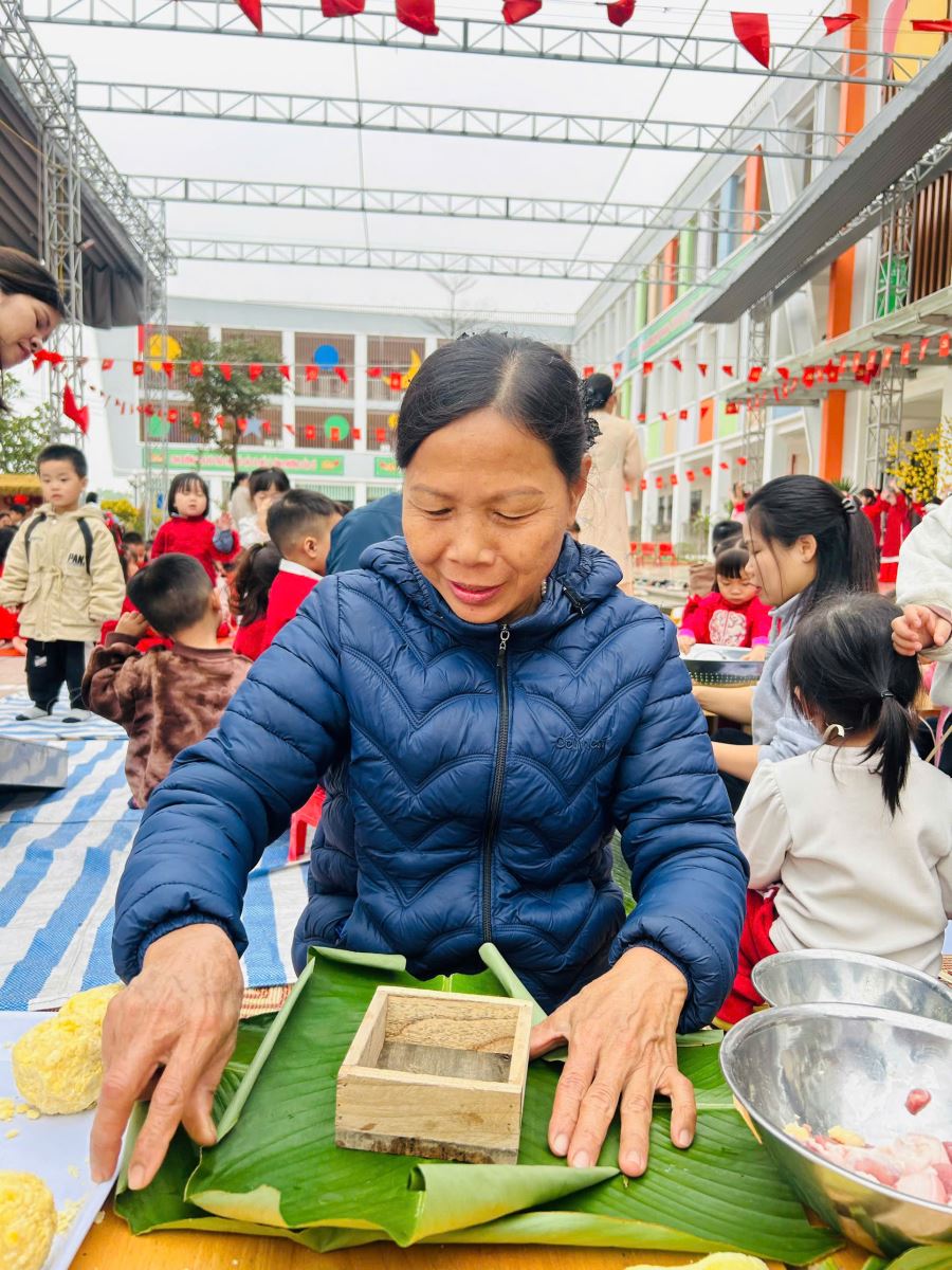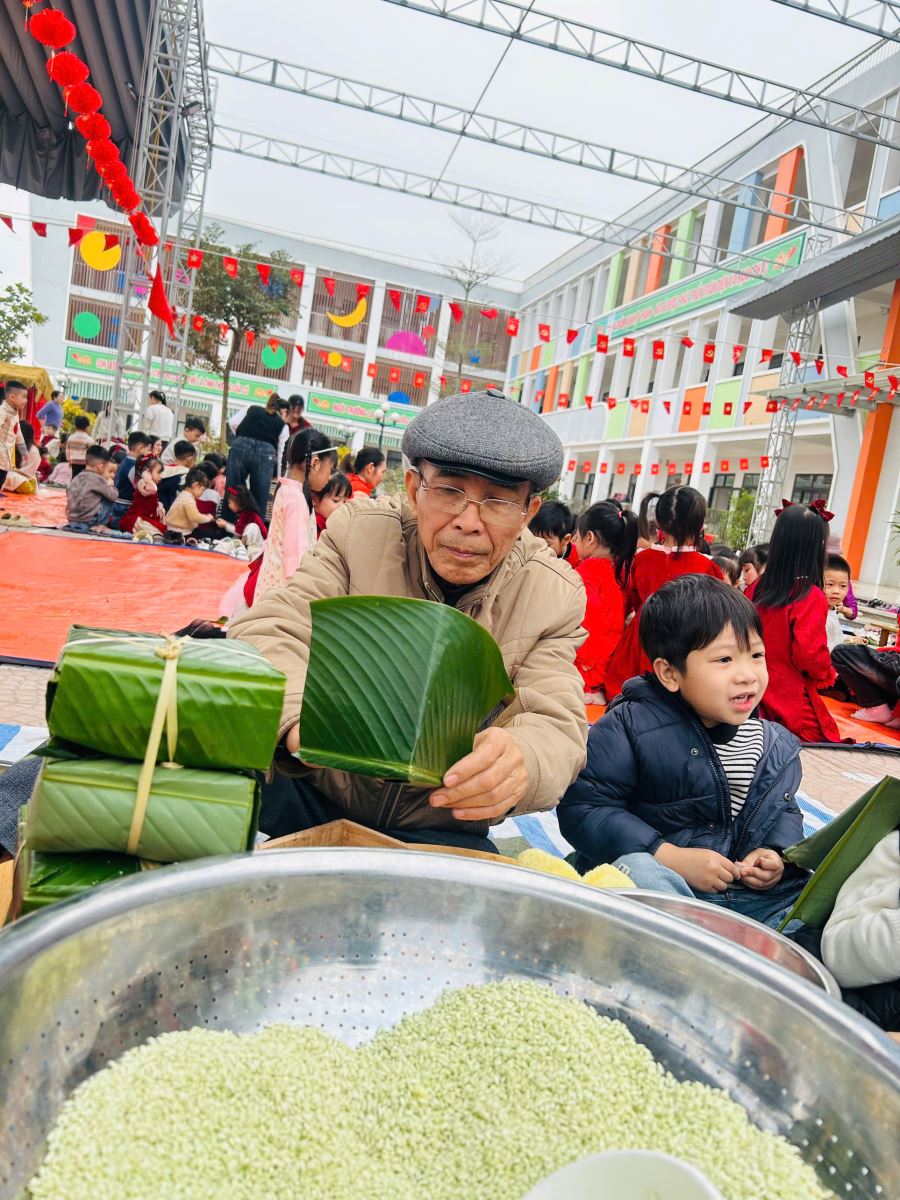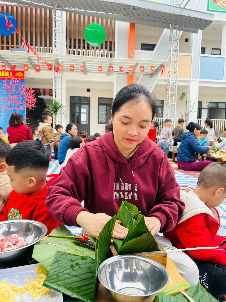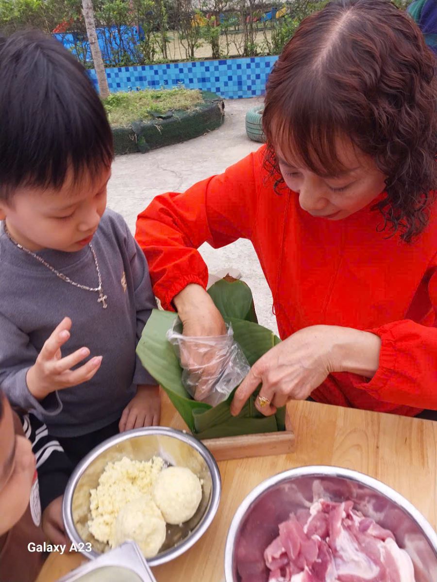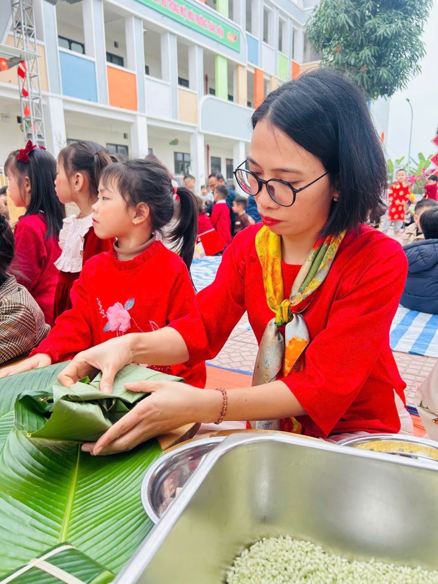 13/02/2026 A- A A+ | TRƯỜNG MẦM NON HỢP THANH TỔ CHỨC HOẠT ĐỘNG GÓI BÁNH CHƯNG CHO TRẺ Xem Chia s? TRƯỜNG MẦM NON HỢP THANH TỔ CHỨC HOẠT ĐỘNG GÓI BÁNH CHƯNG CHO TRẺ (Ngày 11/02/2026) Trong không khí rộn ràng của những ngày đầu xuân, sáng ngày 11/02/2026, Trường Mầm non Hợp Thanh đã tổ chức hoạt động trải nghiệm “Gói bánh chưng ngày Tết” cho các bé. Đây là một hoạt động ý nghĩa nhằm giúp trẻ hiểu thêm về nét đẹp truyền thống của dân tộc Việt Nam mỗi dịp Tết đến, xuân về. Ngay từ sáng sớm, sân trường đã ngập tràn sắc xanh của lá dong, màu trắng của gạo nếp, màu vàng của đỗ xanh và màu hồng tươi của thịt lợn. Dưới sự hướng dẫn tận tình của các cô giáo và sự hỗ trợ của phụ huynh, các bé được quan sát quy trình gói bánh chưng, hiểu được các bước để làm ra chiếc bánh. Các con vô cùng hào hứng khi được tự tay lau lá dong, đong gạo, cho đỗ, xếp thịt và cùng cô gói nên những chiếc bánh vuông vắn. Những bàn tay nhỏ xinh tuy còn vụng về nhưng ánh mắt lại ánh lên niềm vui và sự thích thú. Tiếng cười nói rộn ràng khắp sân trường tạo nên một không khí ấm áp, sum vầy như chính không khí Tết cổ truyền. Hoạt động không chỉ giúp trẻ rèn luyện sự khéo léo, tính kiên trì mà còn giáo dục các con biết trân trọng những giá trị truyền thống, yêu quê hương đất nước và hiểu được ý nghĩa của sự đoàn viên trong gia đình. Đây cũng là dịp để nhà trường tăng cường sự gắn kết giữa gia đình và nhà trường thông qua các hoạt động trải nghiệm thực tế. Buổi trải nghiệm gói bánh chưng khép lại trong niềm vui hân hoan của cô và trò Trường Mầm non Hợp Thanh. Những chiếc bánh chưng xanh không chỉ là thành quả lao động mà còn là minh chứng cho một ngày học tập đầy ý nghĩa, góp phần nuôi dưỡng trong tâm hồn trẻ thơ tình yêu văn hóa dân tộc ngay từ những năm tháng đầu đời. Tập tin đính kèm Tải về