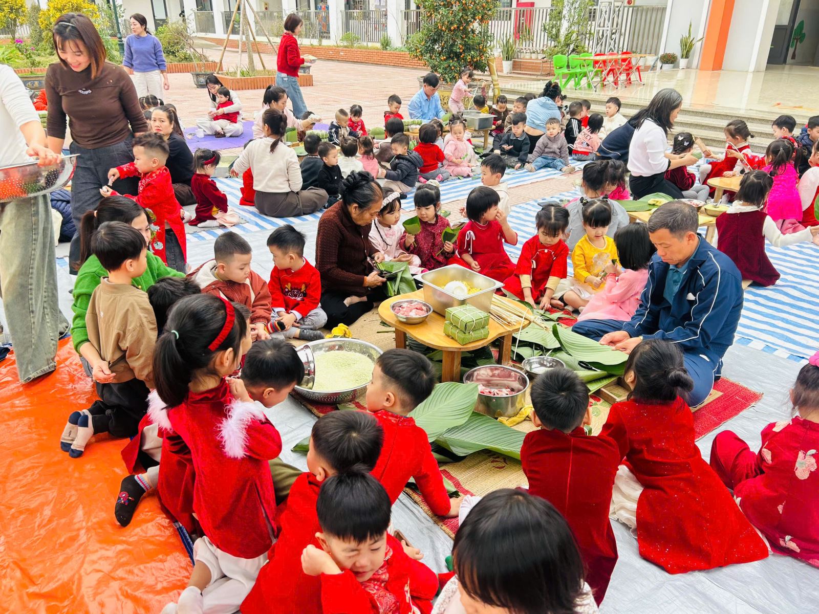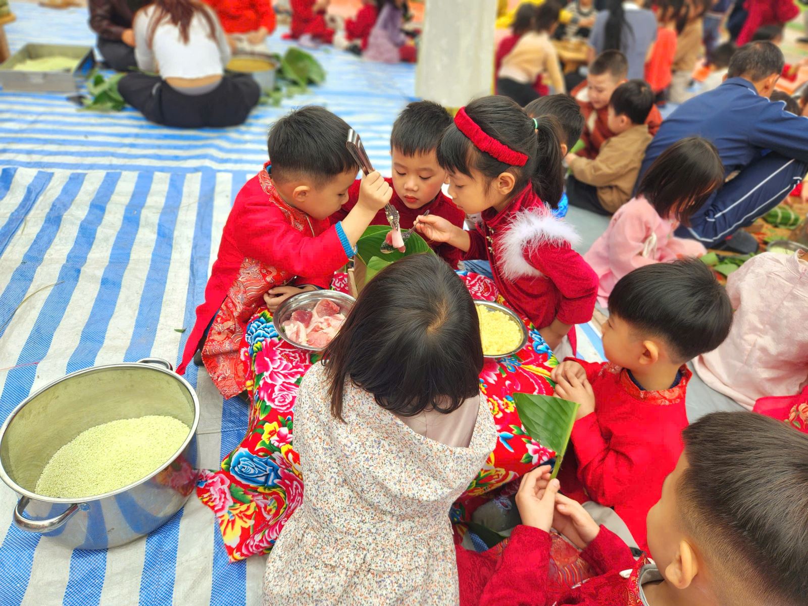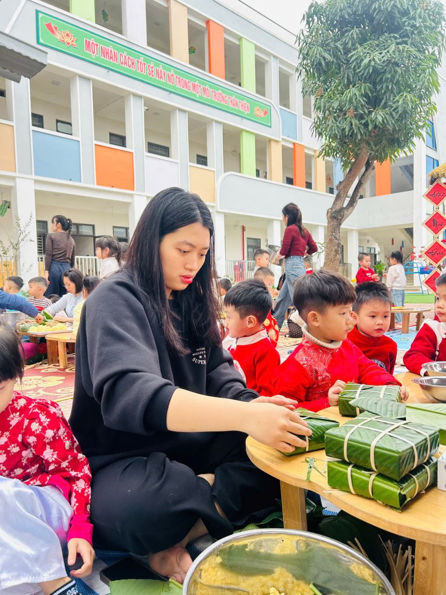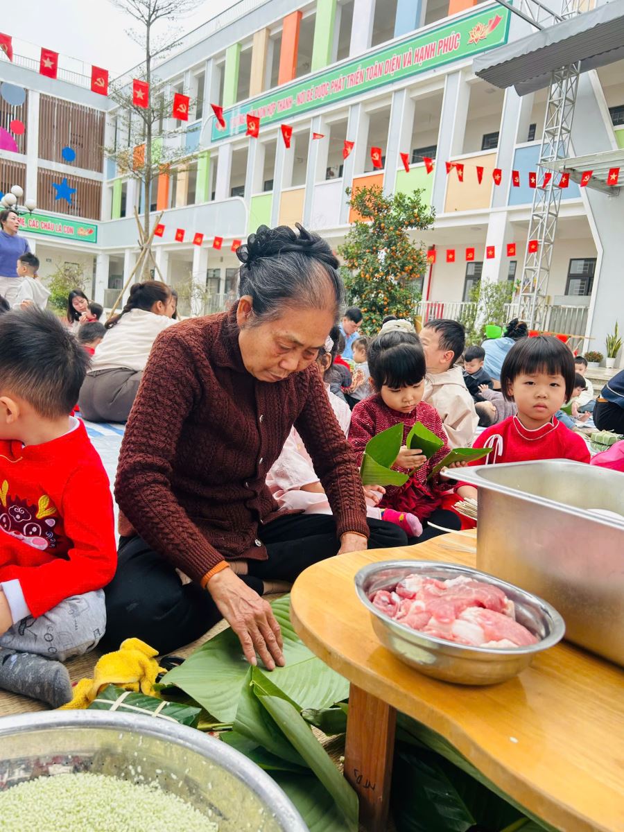 13/02/2026 A- A A+ | TRƯỜNG MẦM NON HỢP THANH TỔ CHỨC HOẠT ĐỘNG GÓI BÁNH CHƯNG CHO TRẺ Xem Chia s? TRƯỜNG MẦM NON HỢP THANH TỔ CHỨC HOẠT ĐỘNG GÓI BÁNH CHƯNG CHO TRẺ (Ngày 11/02/2026) Trong không khí rộn ràng của những ngày đầu xuân, sáng ngày 11/02/2026, Trường Mầm non Hợp Thanh đã tổ chức hoạt động trải nghiệm “Gói bánh chưng ngày Tết” cho các bé. Đây là một hoạt động ý nghĩa nhằm giúp trẻ hiểu thêm về nét đẹp truyền thống của dân tộc Việt Nam mỗi dịp Tết đến, xuân về. Ngay từ sáng sớm, sân trường đã ngập tràn sắc xanh của lá dong, màu trắng của gạo nếp, màu vàng của đỗ xanh và màu hồng tươi của thịt lợn. Dưới sự hướng dẫn tận tình của các cô giáo và sự hỗ trợ của phụ huynh, các bé được quan sát quy trình gói bánh chưng, hiểu được các bước để làm ra chiếc bánh. Các con vô cùng hào hứng khi được tự tay lau lá dong, đong gạo, cho đỗ, xếp thịt và cùng cô gói nên những chiếc bánh vuông vắn. Những bàn tay nhỏ xinh tuy còn vụng về nhưng ánh mắt lại ánh lên niềm vui và sự thích thú. Tiếng cười nói rộn ràng khắp sân trường tạo nên một không khí ấm áp, sum vầy như chính không khí Tết cổ truyền. Hoạt động không chỉ giúp trẻ rèn luyện sự khéo léo, tính kiên trì mà còn giáo dục các con biết trân trọng những giá trị truyền thống, yêu quê hương đất nước và hiểu được ý nghĩa của sự đoàn viên trong gia đình. Đây cũng là dịp để nhà trường tăng cường sự gắn kết giữa gia đình và nhà trường thông qua các hoạt động trải nghiệm thực tế. Buổi trải nghiệm gói bánh chưng khép lại trong niềm vui hân hoan của cô và trò Trường Mầm non Hợp Thanh. Những chiếc bánh chưng xanh không chỉ là thành quả lao động mà còn là minh chứng cho một ngày học tập đầy ý nghĩa, góp phần nuôi dưỡng trong tâm hồn trẻ thơ tình yêu văn hóa dân tộc ngay từ những năm tháng đầu đời. Tập tin đính kèm Tải về
