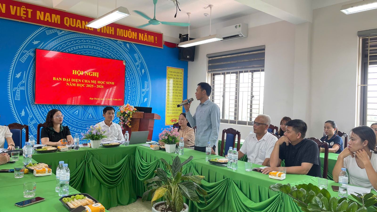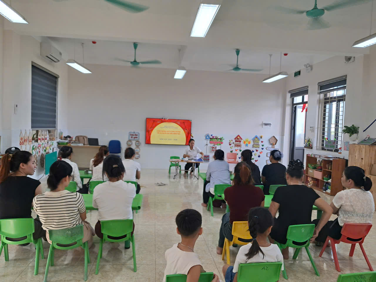 13/09/2025 A- A A+ | TRƯỜNG MẦM NON HỢP THANH TỔ CHỨC HỌP PHỤ HUYNH ĐẦU NĂM HỌC Xem Chia s? TRƯỜNG MẦM NON HỢP THANH TỔ CHỨC HỌP PHỤ HUYNH ĐẦU NĂM HỌC Thực hiện kế hoạch năm học mới, Trường Mầm non Hợp Thanh đã tổ chức các cuộc họp phụ huynh nhằm triển khai một số nội dung quan trọng đến phụ huynh học sinh. Đặc biệt, về phía lãnh đạo địa phương, nhà trường vinh dự được đón tiếp ông Đinh Công Võ – Phó Trưởng phòng Văn hóa – Xã hội UBND xã về dự và chỉ đạo. 👉 Cuộc họp đại diện cha mẹ học sinh có sự tham gia của Ban giám hiệu cùng đại diện cha mẹ học sinh các lớp. Tại buổi họp, nhà trường đã thông qua phương hướng, nhiệm vụ trong năm học mới, đồng thời bầu Ban đại diện cha mẹ học sinh cấp trường. Đây là cầu nối quan trọng giữa nhà trường và gia đình, góp phần phối hợp chặt chẽ trong việc chăm sóc, nuôi dưỡng và giáo dục trẻ. 👉 Cuộc họp phụ huynh từng lớp được tổ chức với sự tham gia của toàn thể cha mẹ học sinh và các giáo viên chủ nhiệm. Tại đây, giáo viên đã phổ biến kế hoạch giảng dạy, nề nếp sinh hoạt, quy định về đảm bảo an toàn cho trẻ và trao đổi trực tiếp về tình hình học tập, rèn luyện của từng bé. Đồng thời, phụ huynh có cơ hội chia sẻ tâm tư, nguyện vọng và phối hợp cùng cô giáo trong việc chăm sóc, giáo dục trẻ tại lớp. Các cuộc họp diễn ra trong không khí nghiêm túc, cởi mở và đạt hiệu quả cao. Sự quan tâm, đồng hành của lãnh đạo địa phương, cùng với sự tin tưởng, phối hợp chặt chẽ của cha mẹ học sinh chính là nguồn động lực để Trường Mầm non Hợp Thanh tiếp tục nỗ lực xây dựng môi trường giáo dục an toàn, thân thiện và hạnh phúc cho các con. Sau đây là 1 số hình ảnh của buổi họp: Tập tin đính kèm Tải về